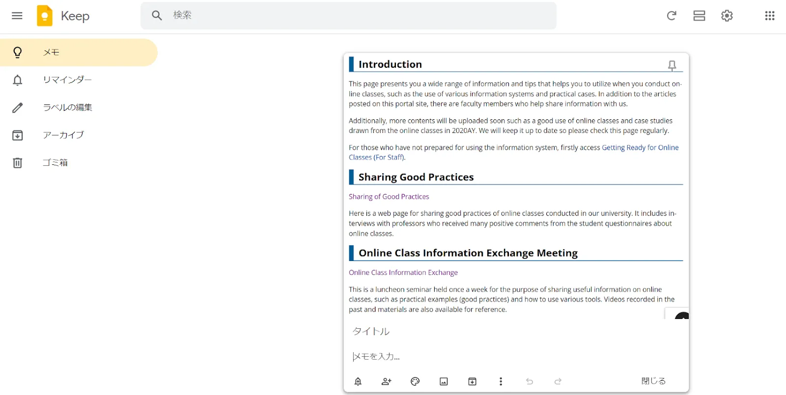 ここでは,画像やメモを保存できるツールとしてGoogle Keepを取り上げ,その特徴について説明します.主な使い方はGoogle Keepのヘルプで確認してください.