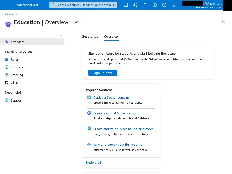 - Azure Dev Tools for Teaching is now available through UTokyo Account from June 2023. You no longer need to create an account using your ECCS Cloud Email address (
