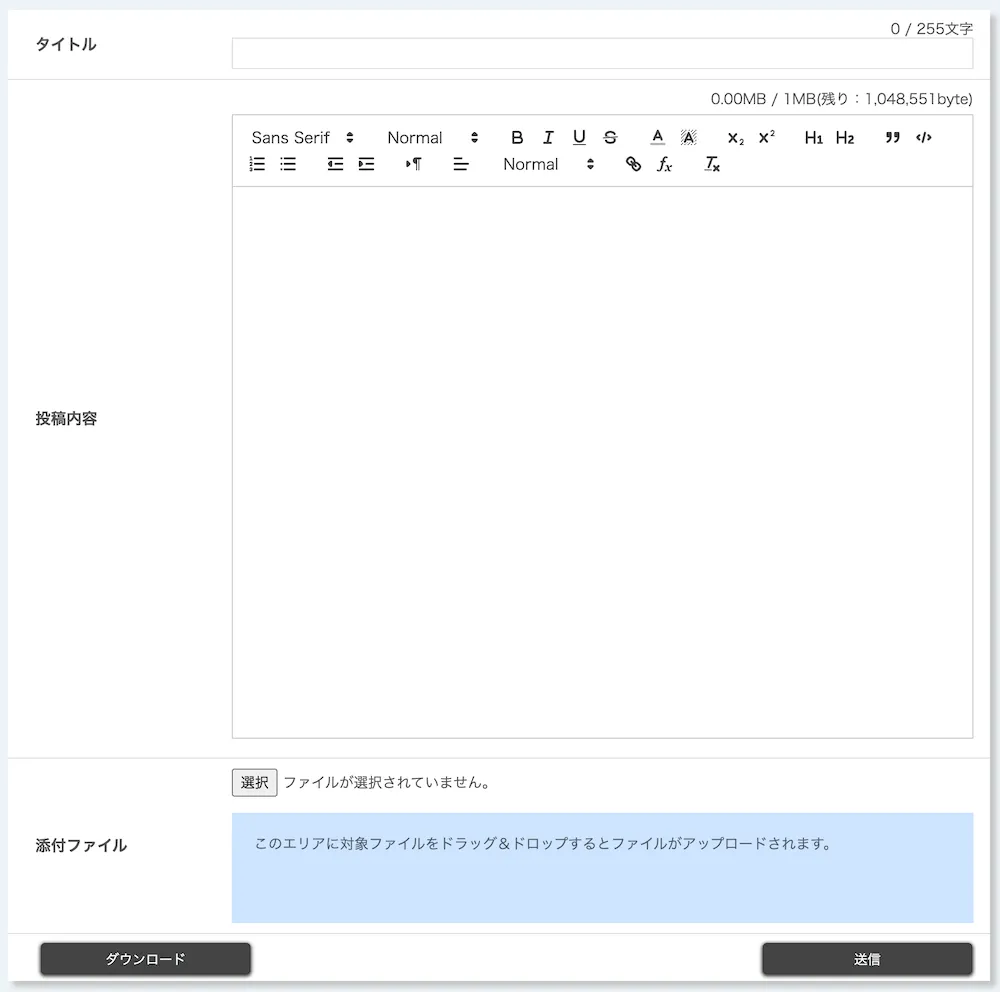 - 投稿内容,添付ファイルのいずれか,または両方の入力が必要です.タイトルのみの投稿はできません.