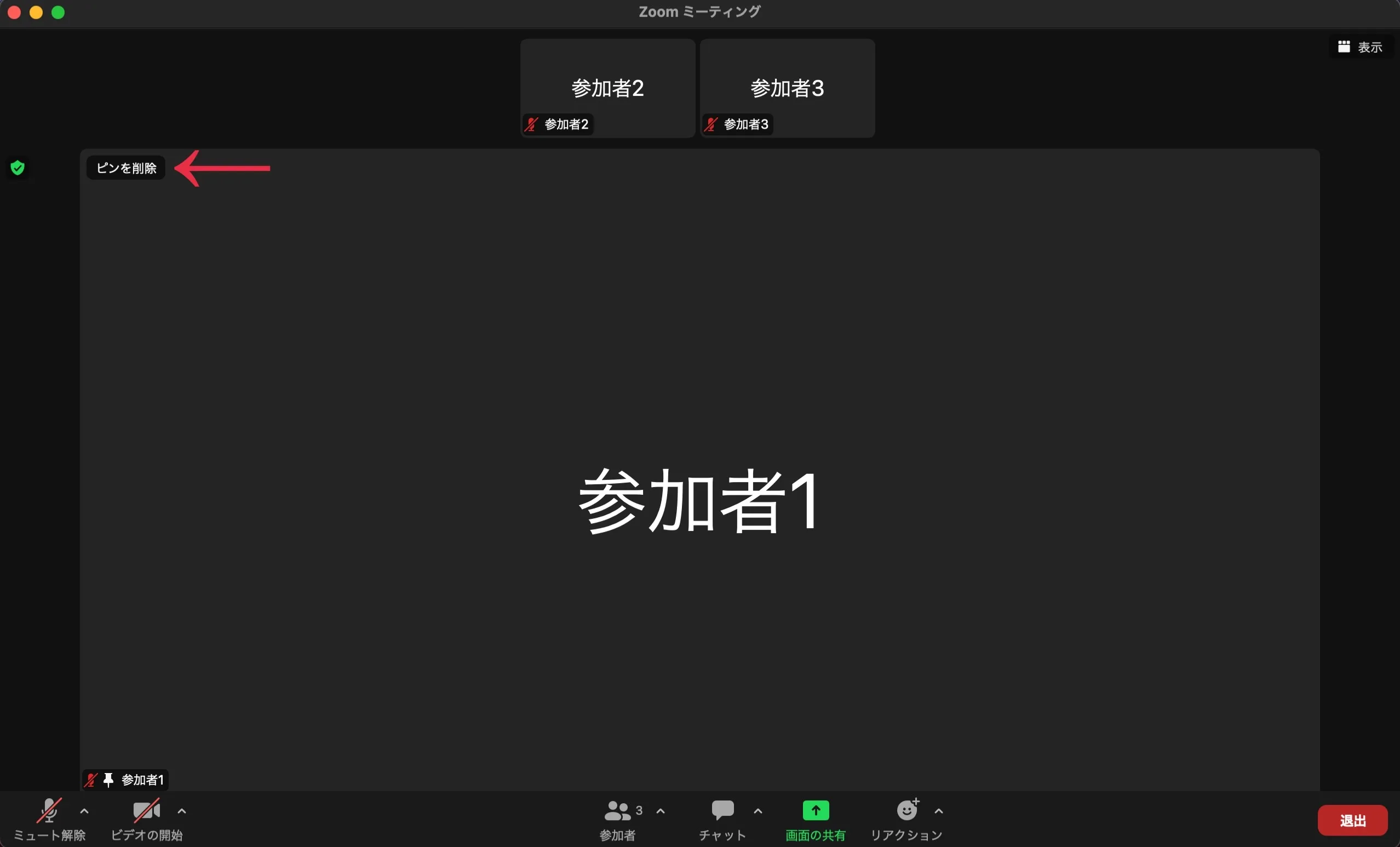 特定の参加者を大きく表示する(ピン留め)